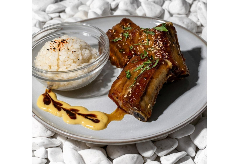 costițe de porc , orez, susan, glazură asiatică, miso-lime,unagi, ceapă verde