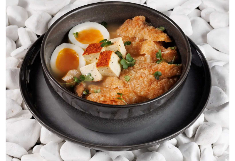 La bază – un bulion ușor de pui, cu ciuperci champignon și tofu afumat tăiat în cuburi mari. Preparatul este completat cu o jumătate de ou fiert, udon fin și fâșii crocante de șnițel de pui prăjit în baie de ulei.