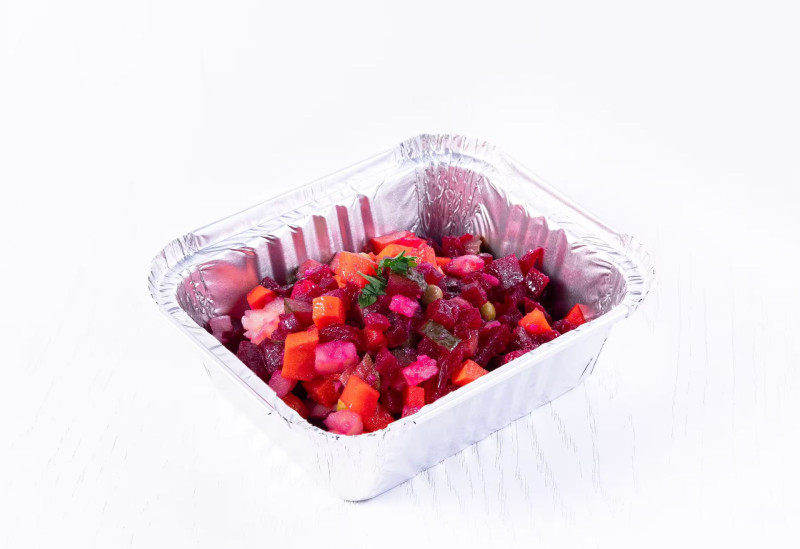 Cartofi, sfeclă, morcov, castraveți murați, ceapă, ceapă verde, ulei, sare, piper negru.