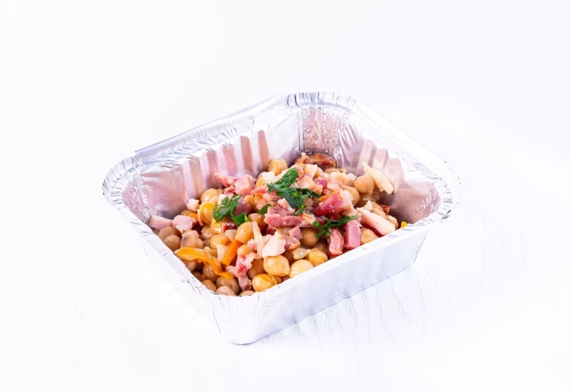 Нут, копченая свинина, лук, растительное масло, соль, черный перец.