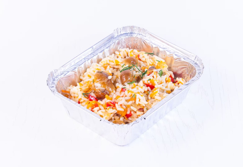 Рис, грибы, болгарский перец, лук, морковь, растительное масло, соль.