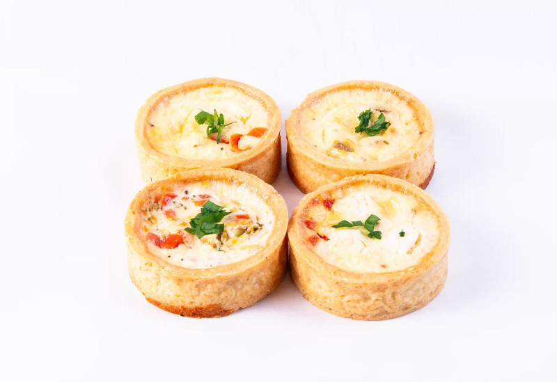 Тесто (пшеничная мука, сливочное масло, соль), начинка (куриное филе, вяленые помидоры, сливки, яйца, соль, черный перец).