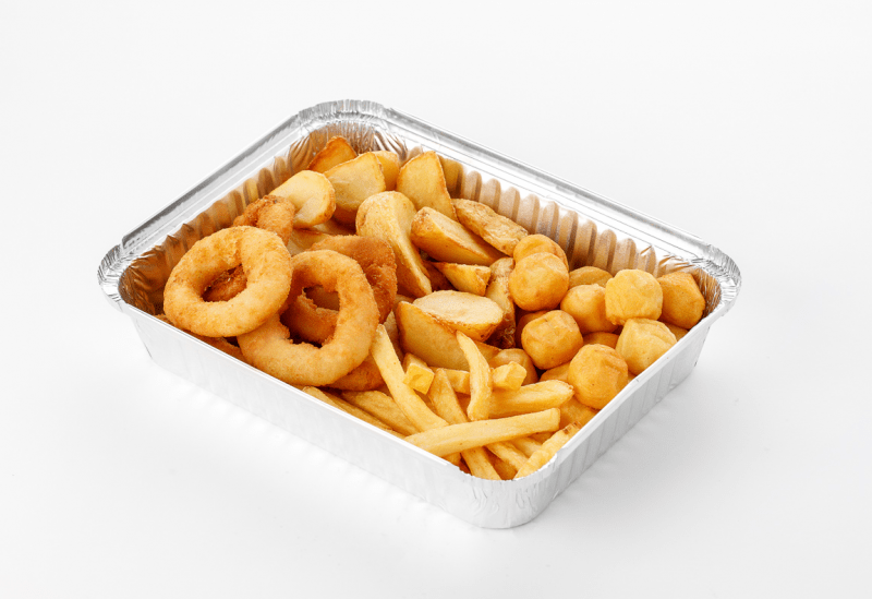 Platou perfect la un pahar de bere: cartofi pai, cartofi Della Nonna, cartofi bile, inele de ceapă.