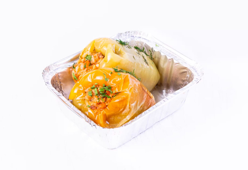 Рис, свиной фарш, лук, морковь, болгарский перец, растительное масло, соль, черный перец.