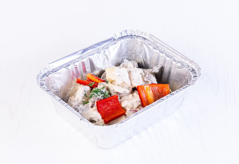 Грибы, куриное филе, болгарский перец, майонез, соль, черный перец.