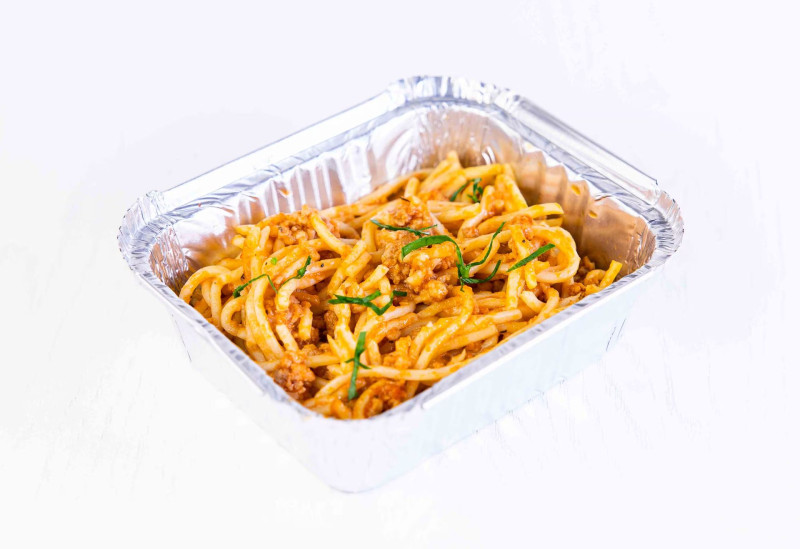 Спагетти, говяжий фарш, свиной фарш, томатный сок, лук, растительное масло, сушеный базилик, соль, черный перец.